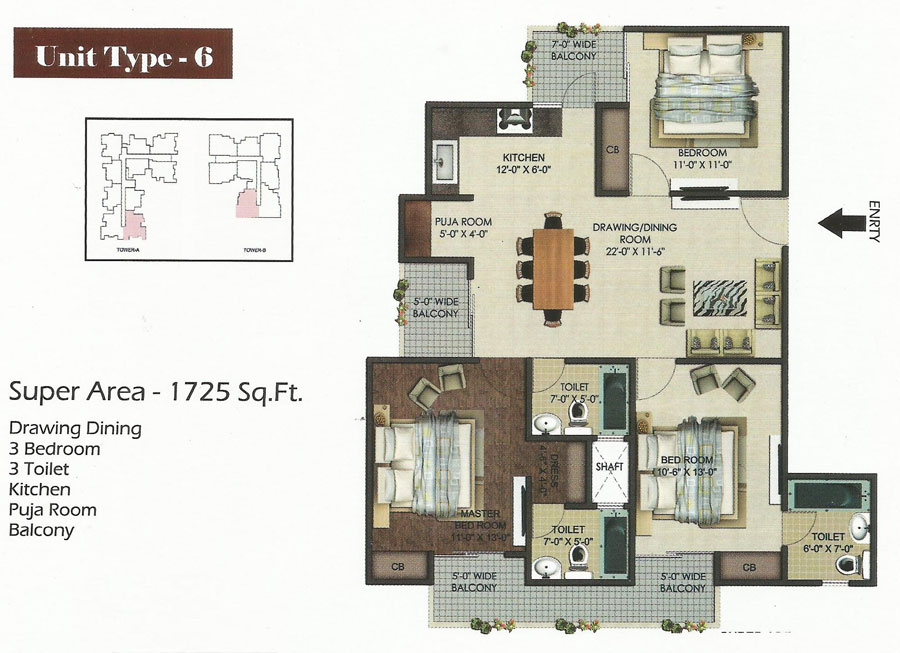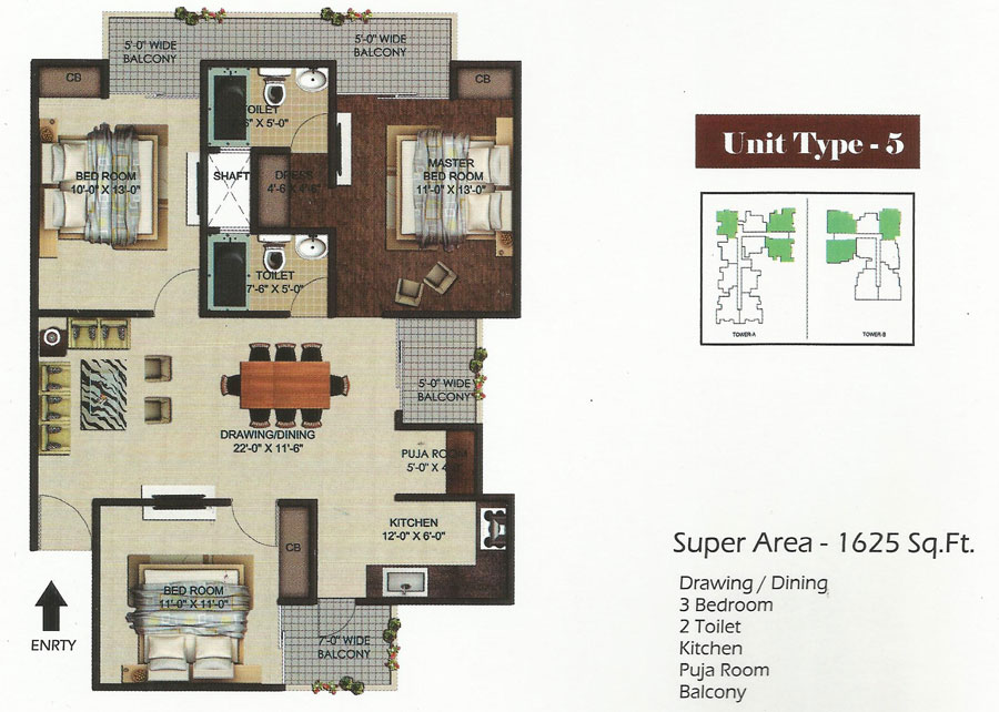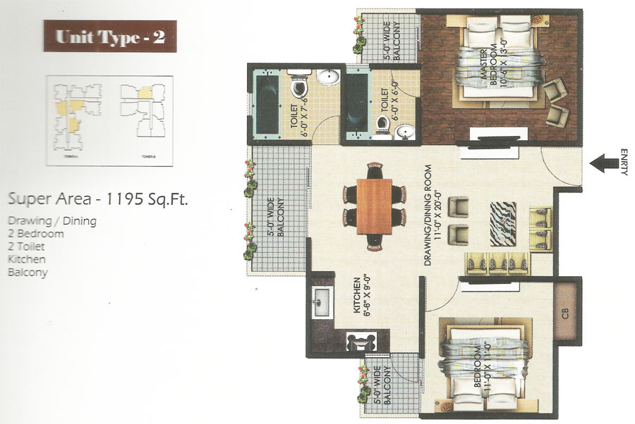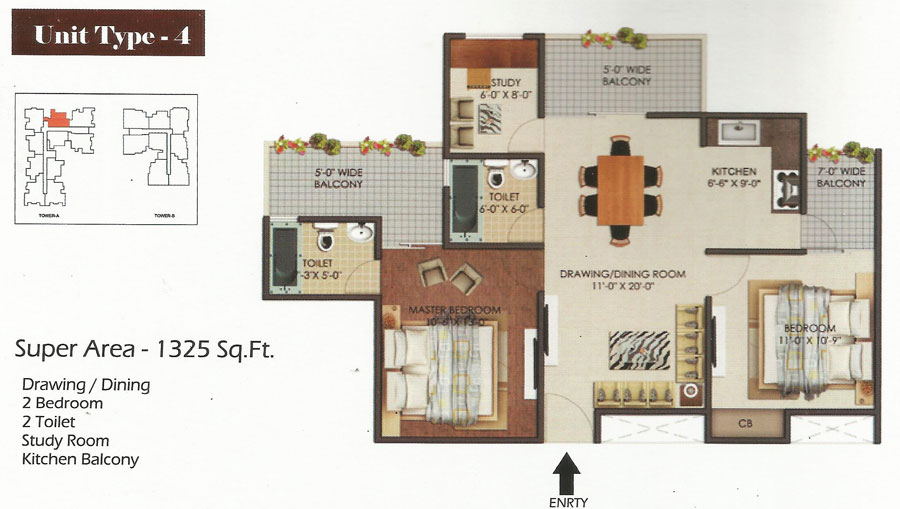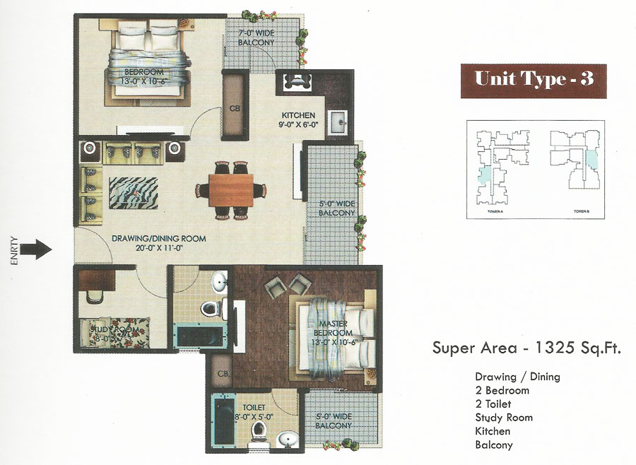 | 2 BHK + 2 TOILETS + STUDY (Type-II) |